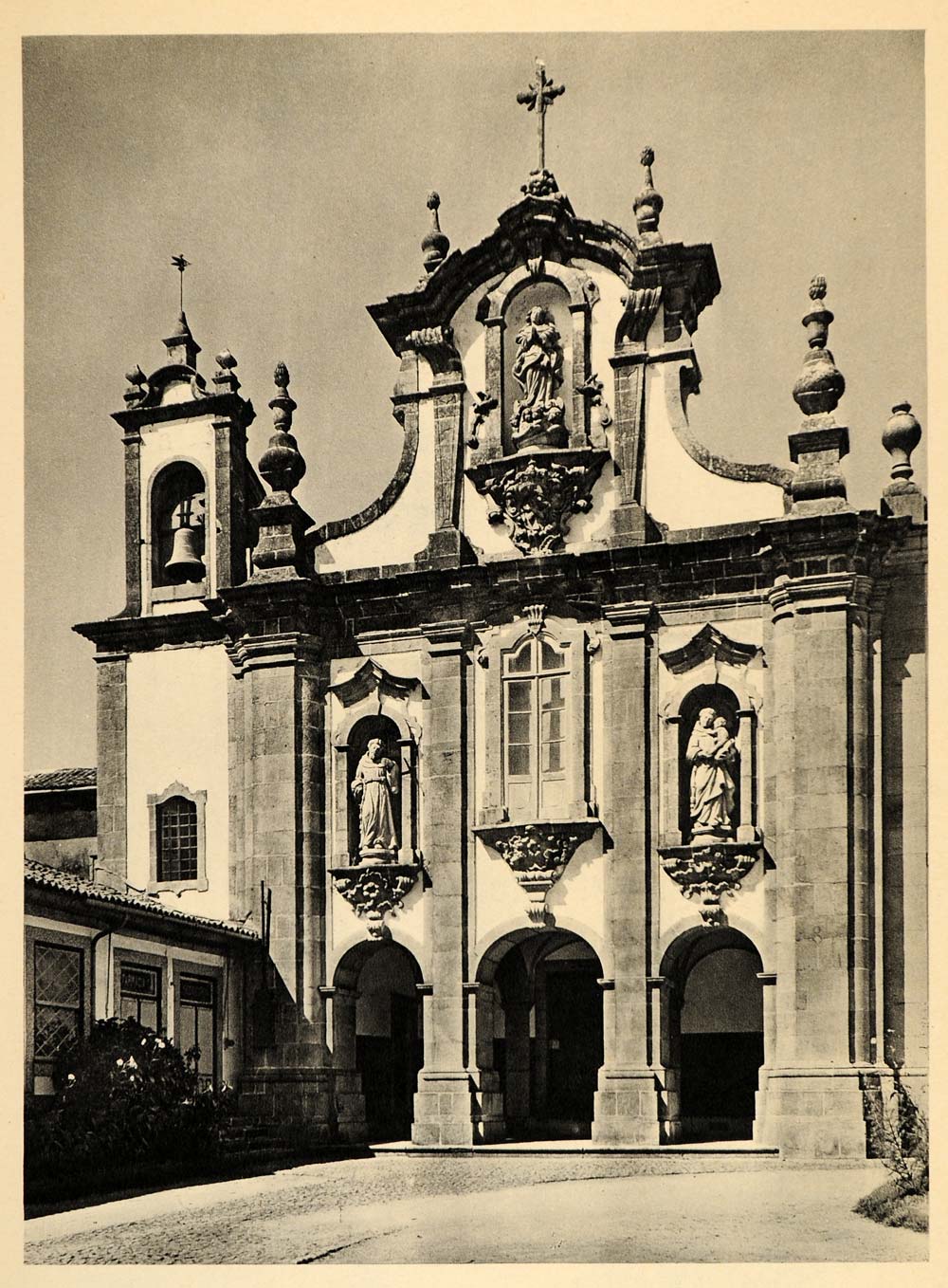 This is an original 1942 photogravure of a church in Guimaraes, Portugal. Photography: Helga Glassner. (Please note that there is printing on the reverse.)