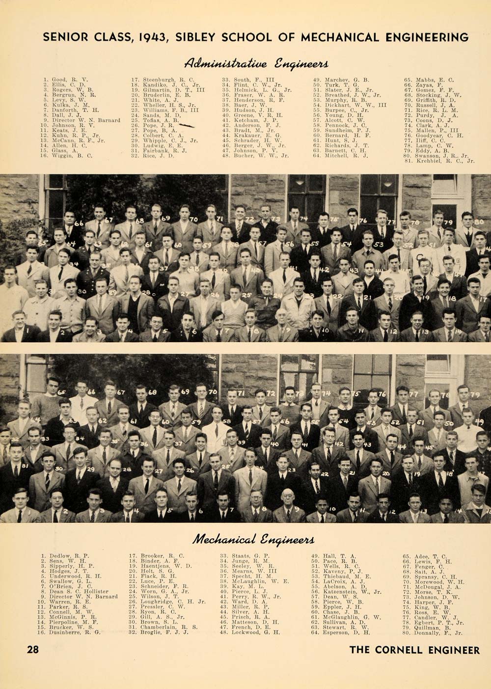 This is an original 1942 halftone print of the Senior Class of 1943 from the Sibley School of Mechanical Engineering, Administrative Engineers at Cornell University, an Ivy League university located in Ithaca, New York.
