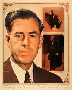 This is an original 1942 color print portrait of four Henry Wallaces. Shown is Henry Agard Wallace, with son Henry Browne Wallace, and father Henry Cantwell Wallace. Also shown is grandfather, Henry Wallace. Henry A. was Roosevelt's Secretary of Agriculture and the Vice President from 1941 to 1945. Henry C. was Warren Harding's Secretary of Agriculture.