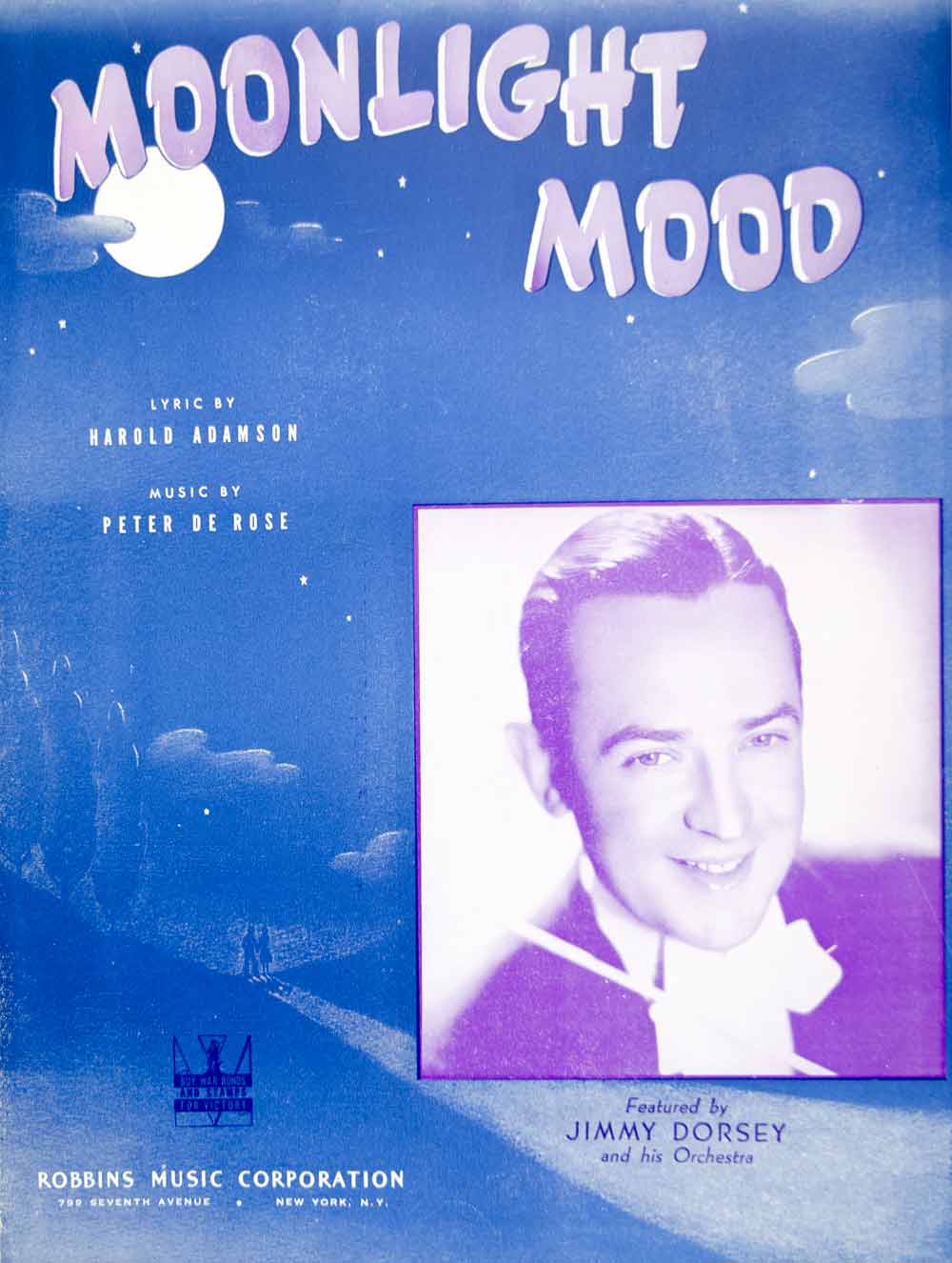 This is an original 1942 piece of sheet music. Words by Harold Adamson and music by Peter de Rose. Copyright © 1942 by Robbins Music Corporation. The cover features bandleader, Jimmy Dorsey.