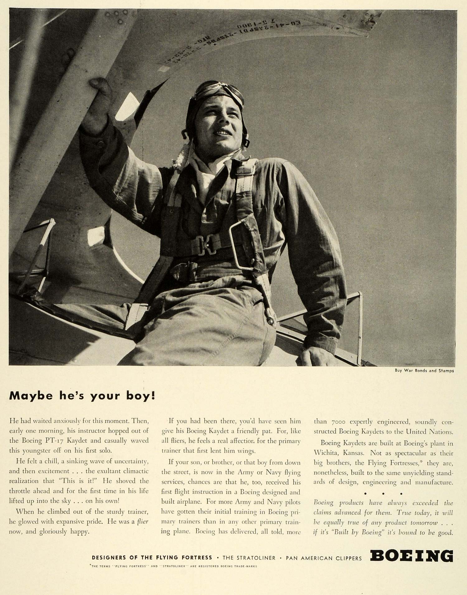 This is an original 1943 black and white print ad for the Boeing Corporation.