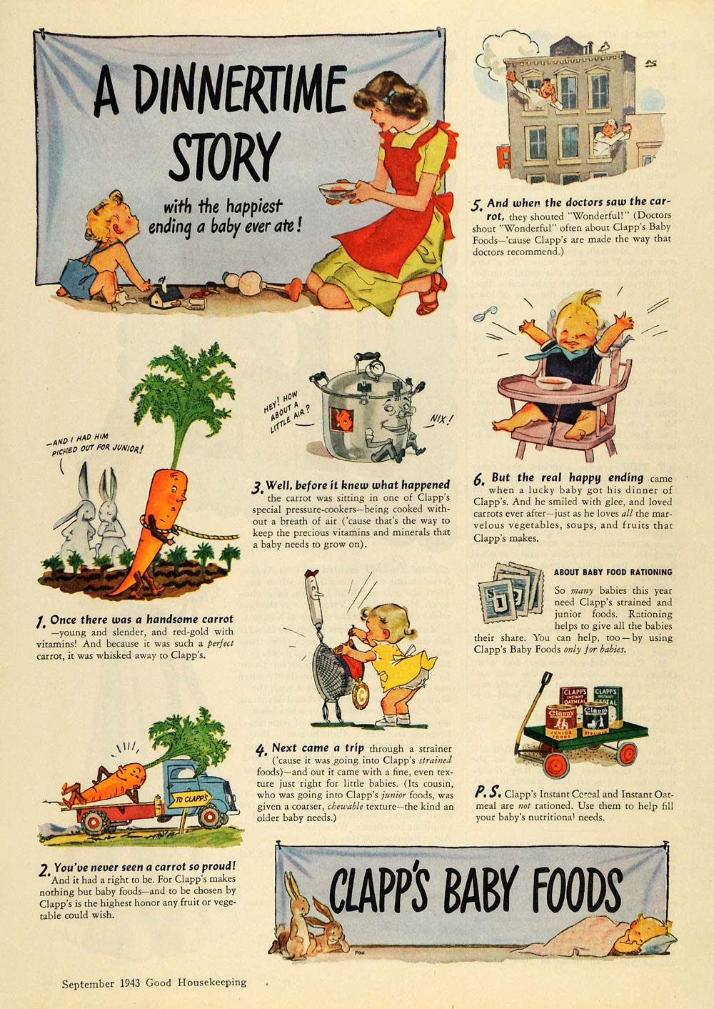 This is an original 1943 color print ad for Clapp's Baby Food.