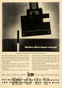 This is an original 1943 black and white print ad for the Climax Molybdenum Company located at 500 Fifth Avenue, New York.