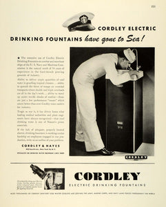 This is an original 1943 black and white print ad for Cordley Electric Drinking Fountains from Cordley and Hayes located at 433 Fourth Avenue, New York City.
