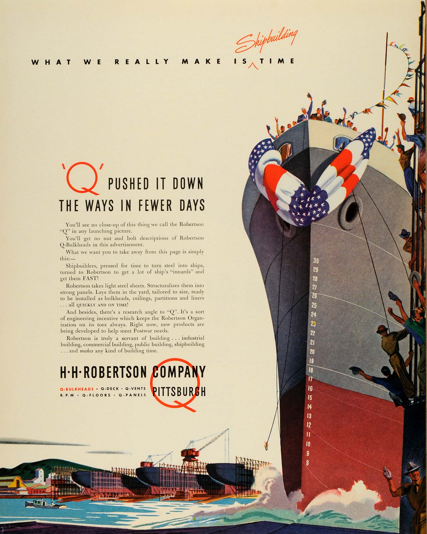 This is an original 1943 color print ad for H. H. Robertson Company located in Pittsburgh, Pennsylvania.