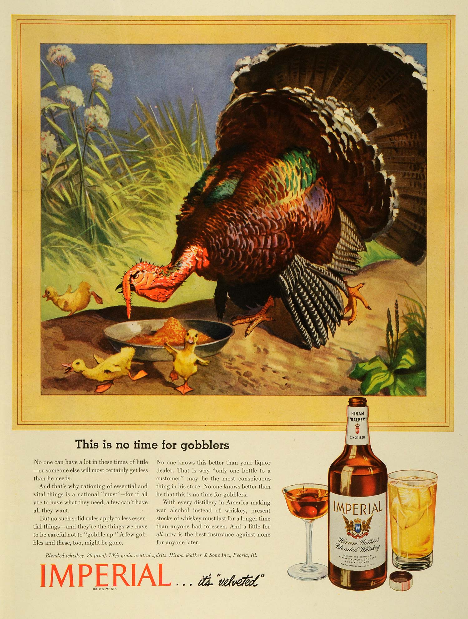 This is an original 1943 color print ad for the Imperial Blended Whiskey from Hiram Walker & Sons Incorporation located in Peoria, Illinois.