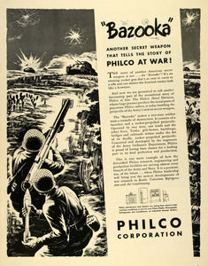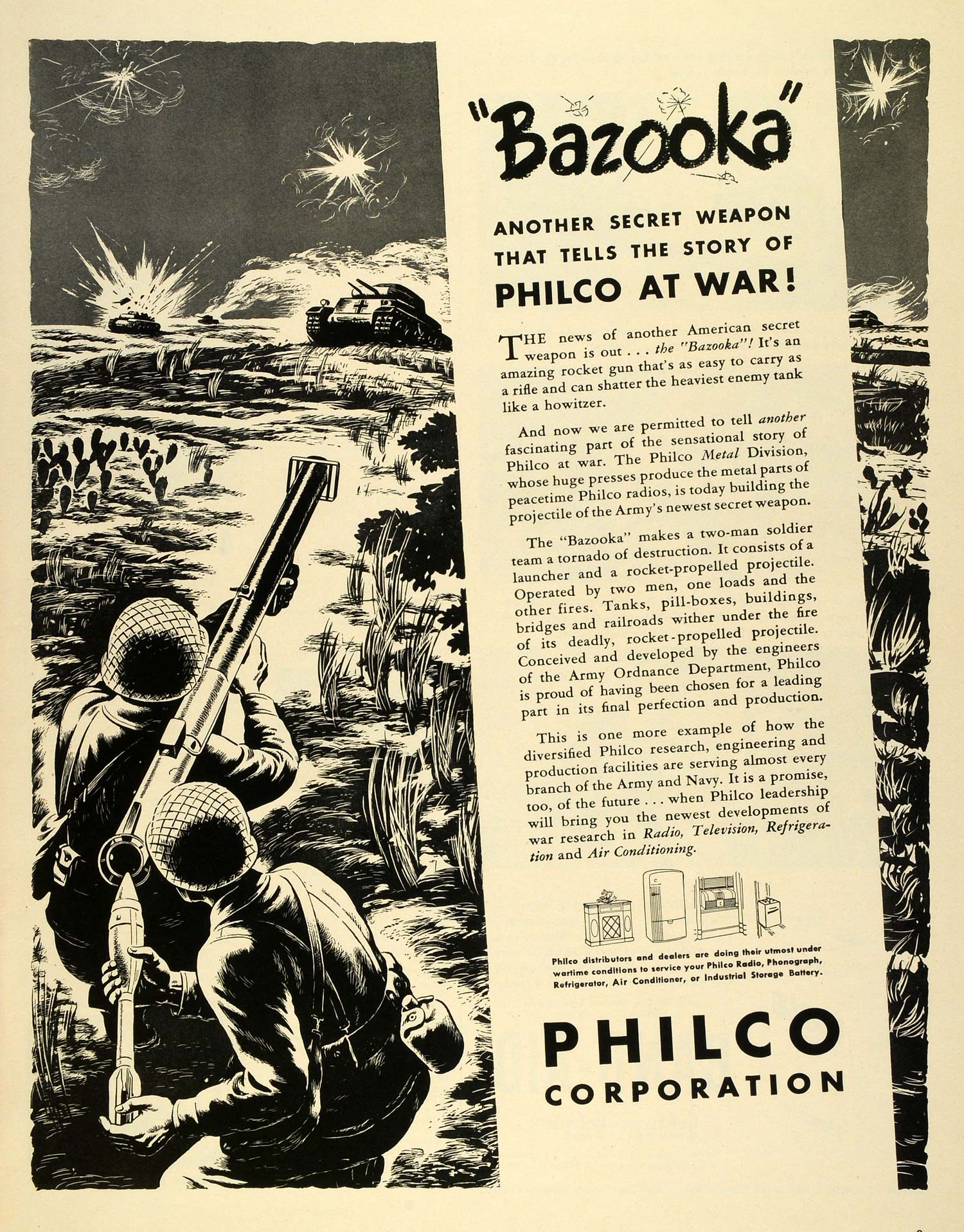 This is an original 1943 black and white print ad for the Bazooka from Philco Corporation.