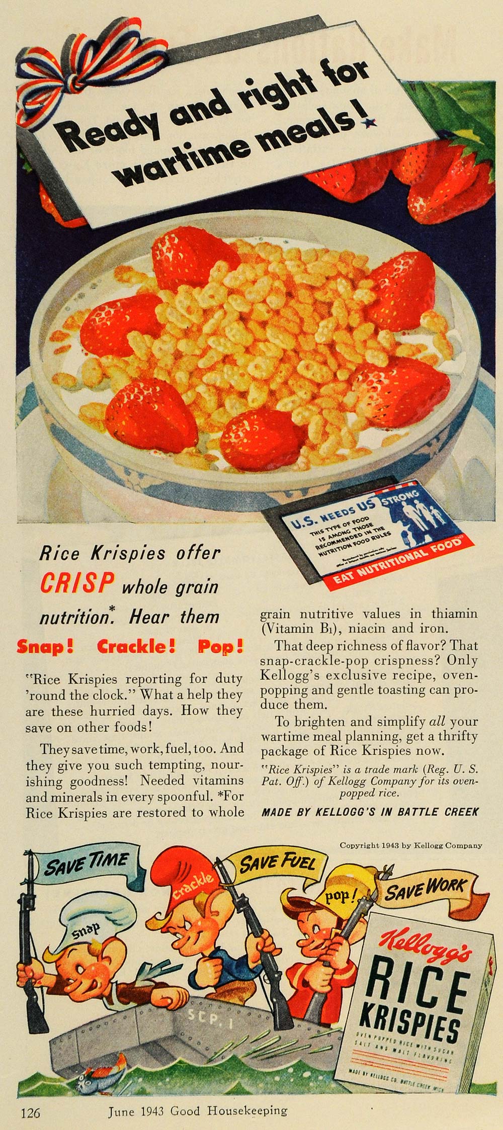 1943 Ad Rice Krispies Cereal War Meal Snap Crackle Pop - ORIGINAL GH4