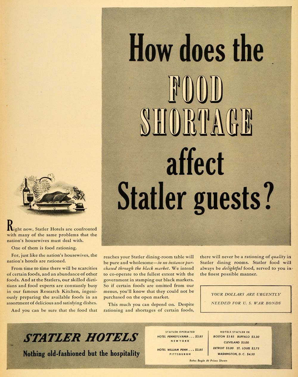1943 Ad Statler Hotel Chain WWII Food Shortage Rationing Conservation LF4