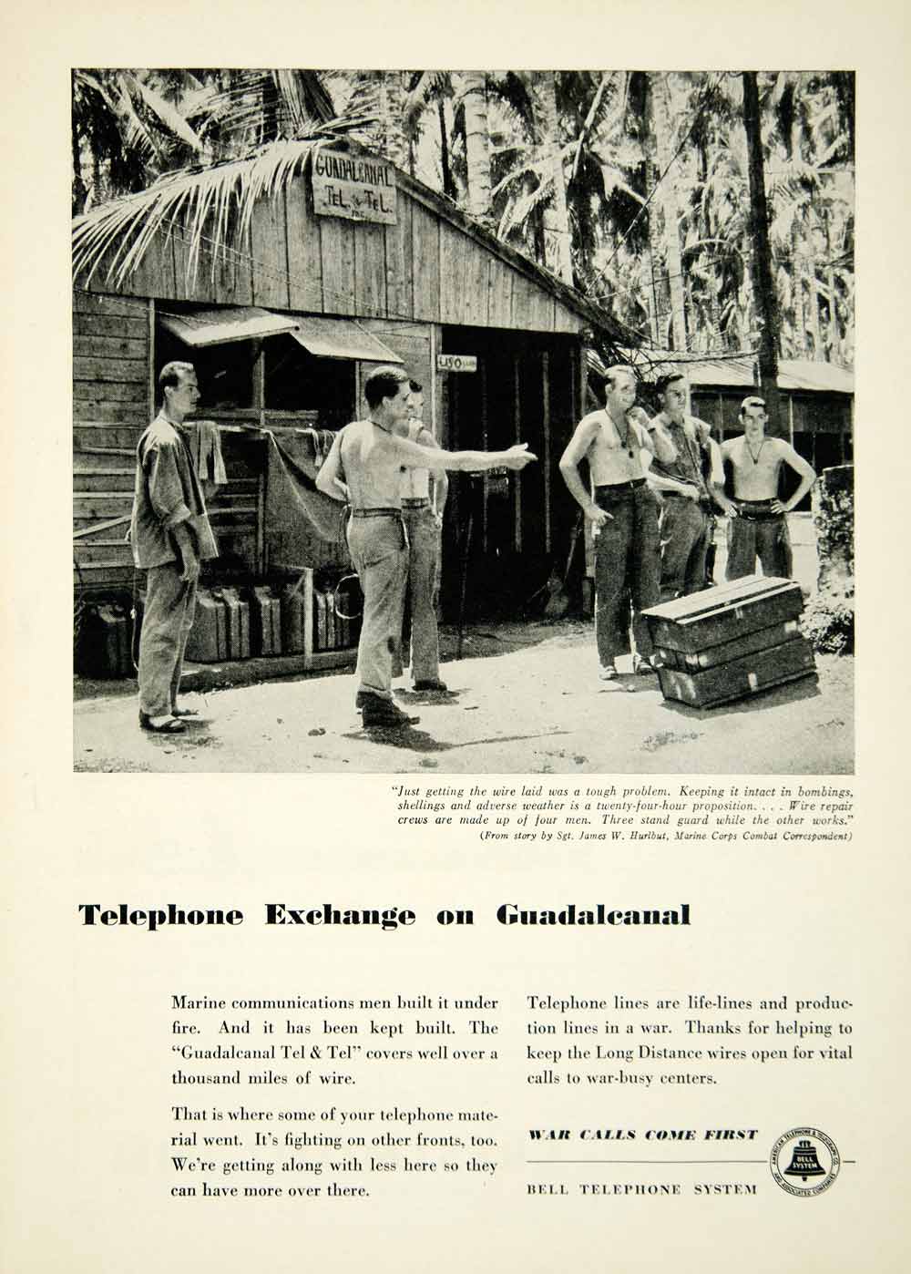 This is an original 1943 black and white print wartime ad for Bell Telephone Systems.