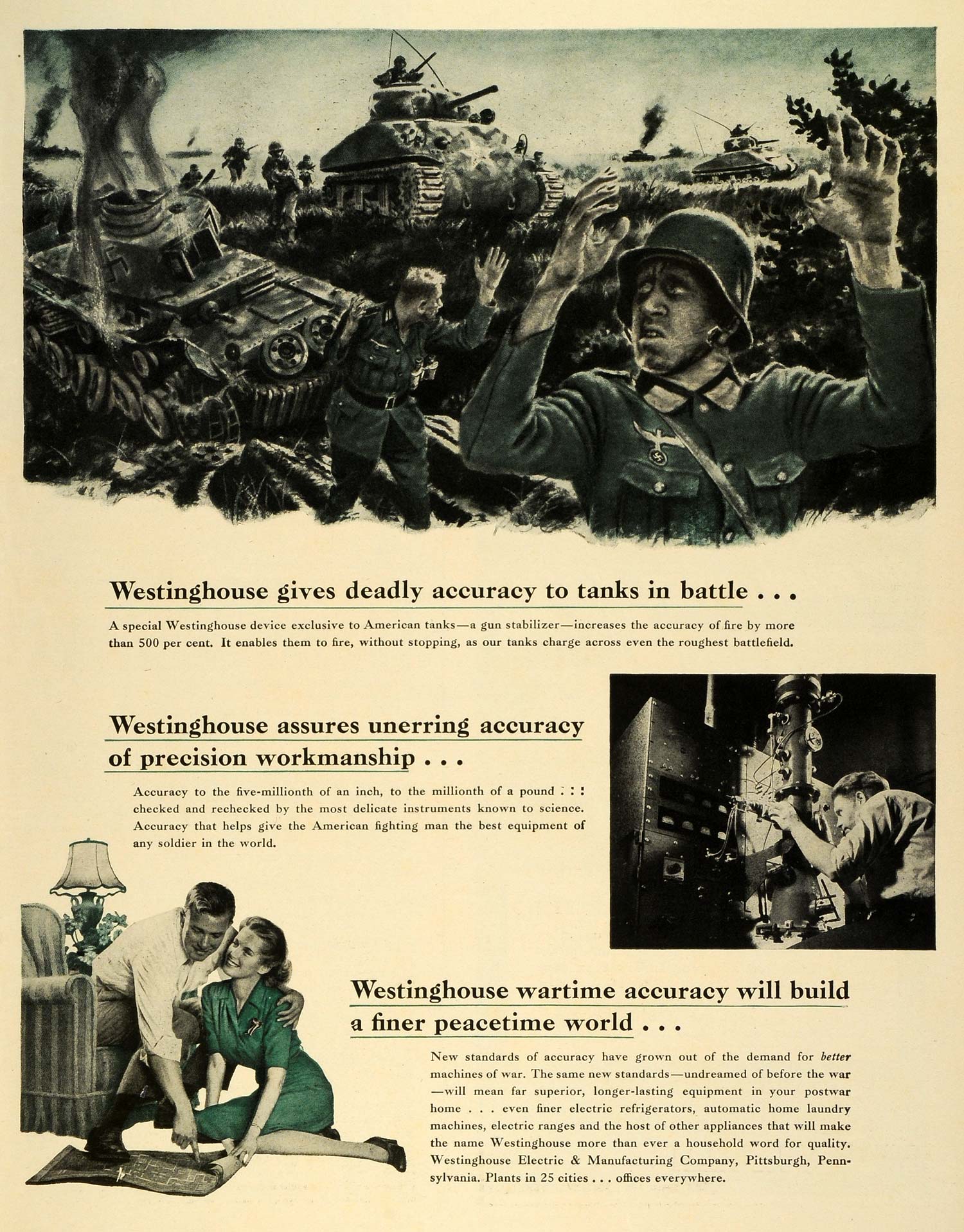 This is an original 1943 color print ad for the Westinghouse Electric Manufacturing Company located in Pittsburgh, Pennsylvania.