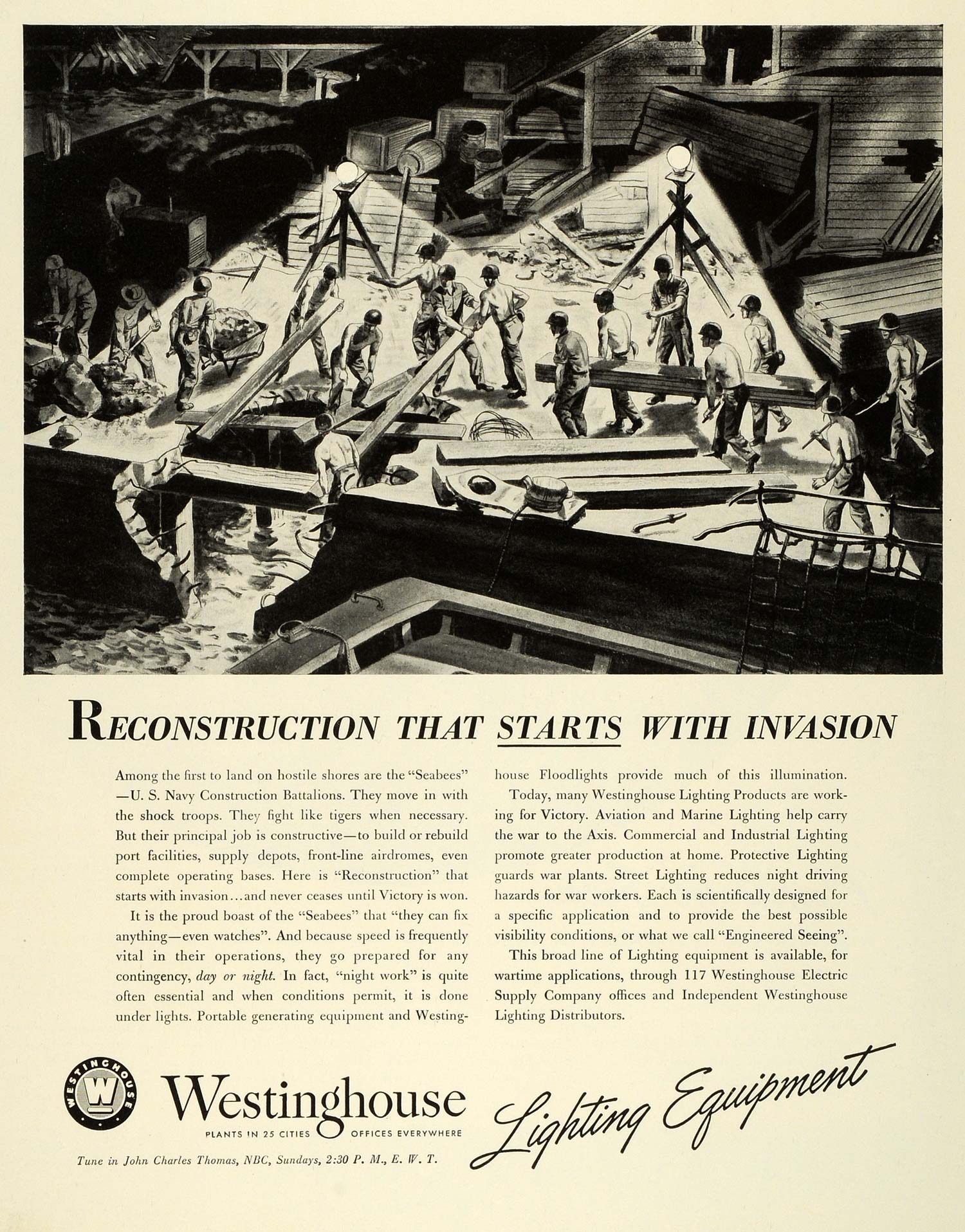 Keywords specific to this image: Vintage Advertising, Navy Construction Battalion, Street Lighting, Utilities