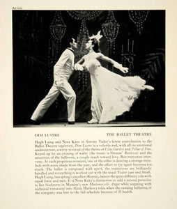 This is an original 1943 black and white halftone print of dancers Hugh Laing and Nora Kaye performing onstage in the 1943 ballet entitled, "Dim Lustre", by Antony Tudor.
