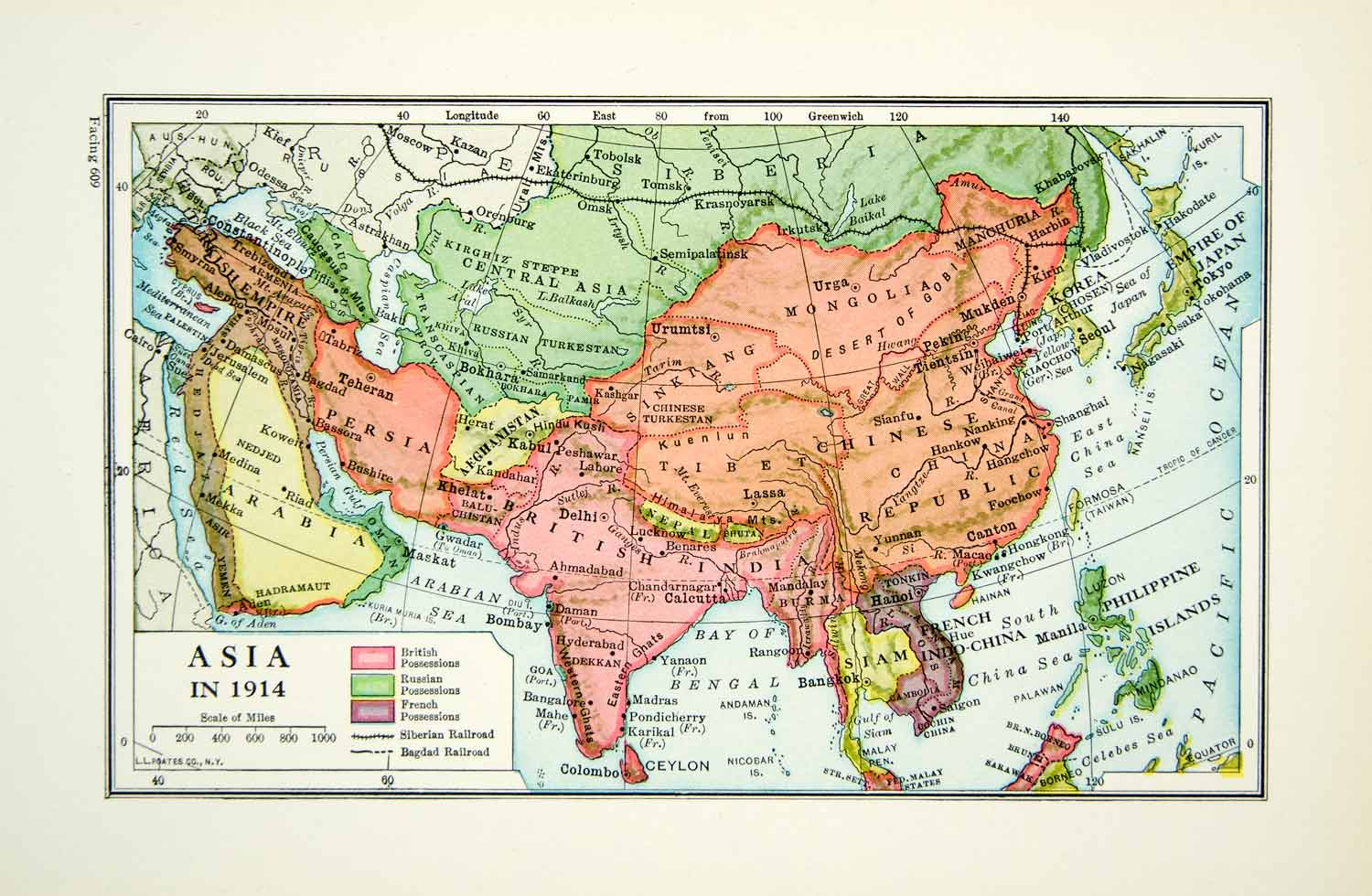 Keywords specific to this image: Korea, Empire of Japan, Philippine Islands, French Indo-China, Bay of Bengal, Tibet, Sinktang, Mongolia, Central Asia