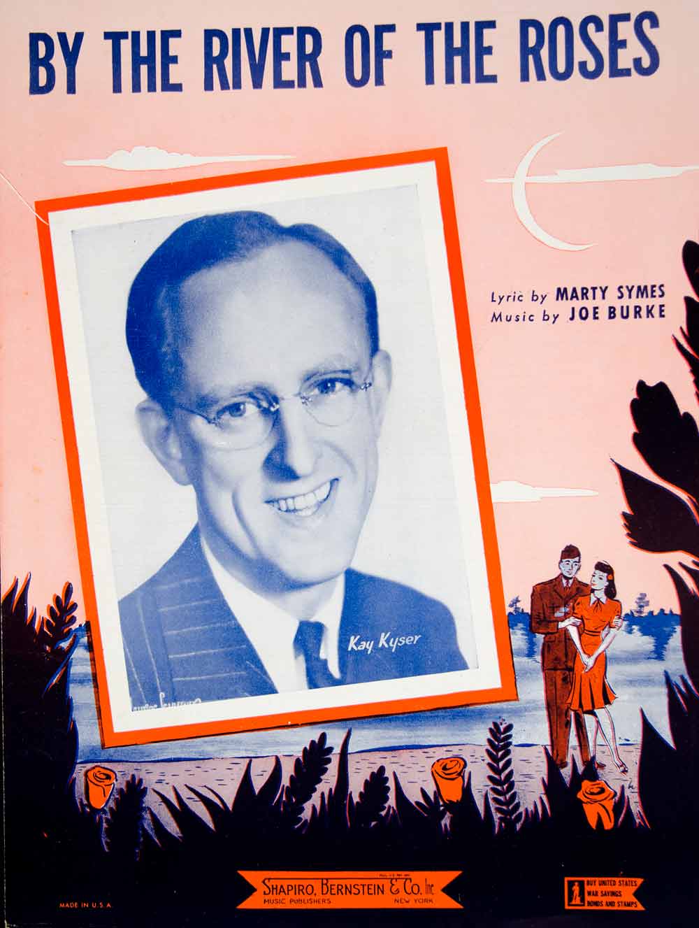 This is an original 1943 piece of sheet music. Words by Marty Symes and music by Joe Burke. Copyright © 1943 by Shapiro, Bernstein & Co., Inc. The cover art features an inset halftone image of bandleader, Kay Keyser.