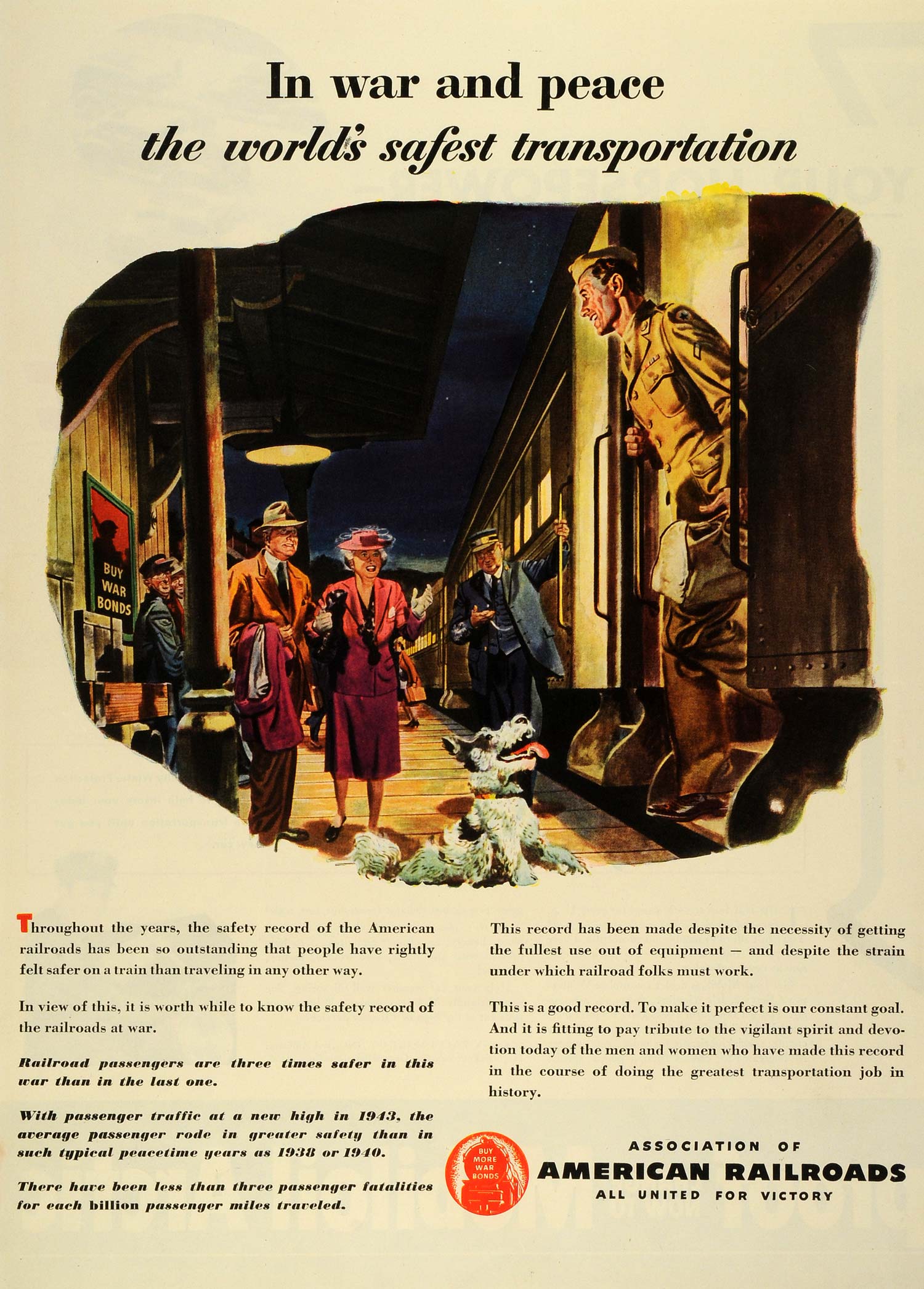 Keywords specific to this image: Vintage Advertising, railway, military, WW2, war bonds, serviceman, G. I.