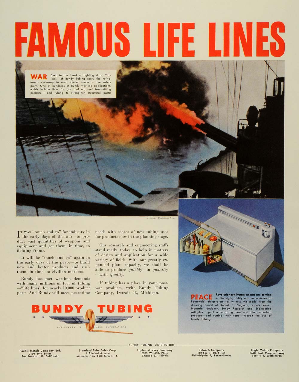 This is an original 1944 color print ad for the Bundy Tubing Company located in Detroit, Michigan.