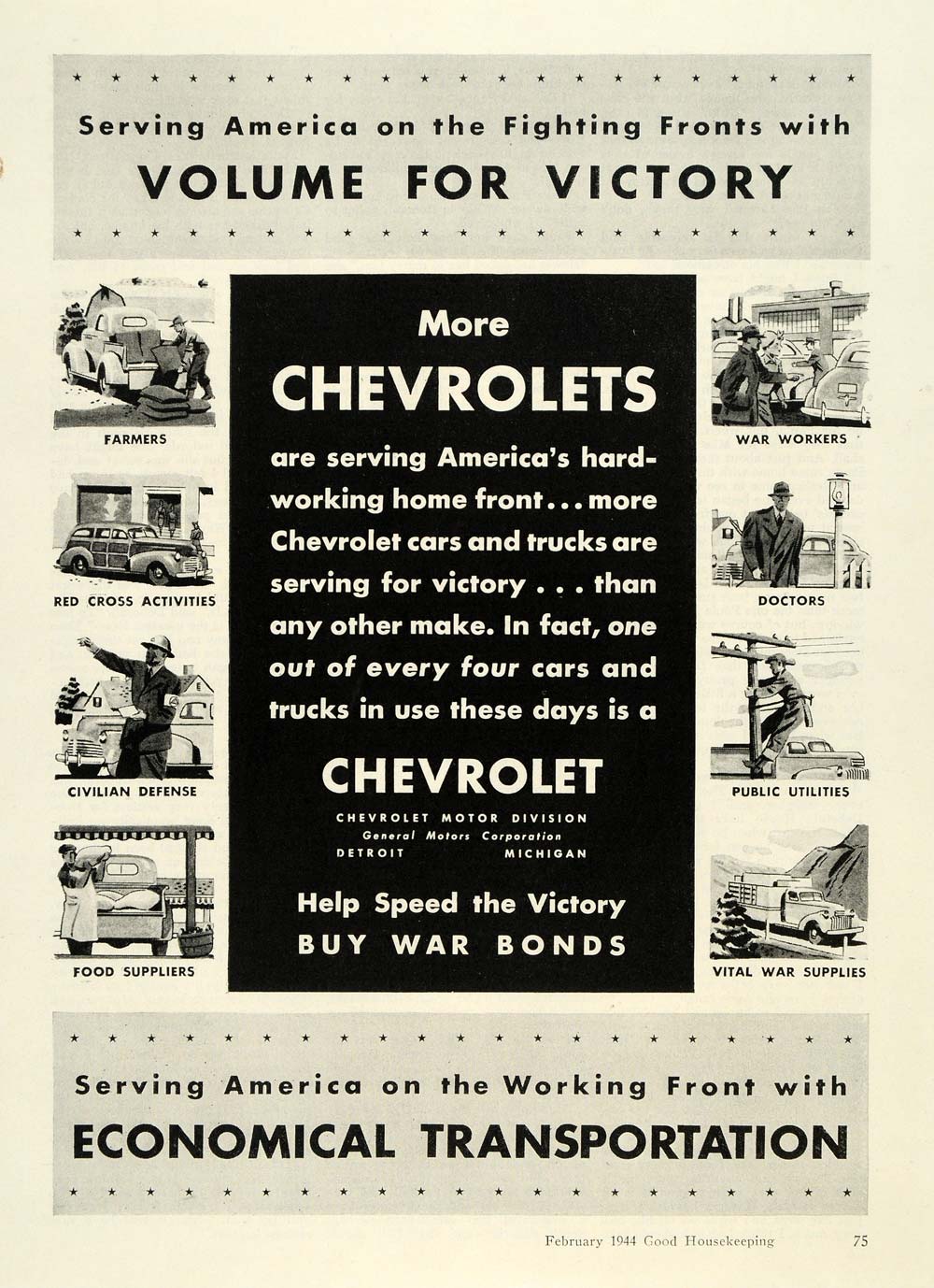 This is an original 1944 black and white print ad for the Chevrolet Motor Division located in Detroit, Michigan.