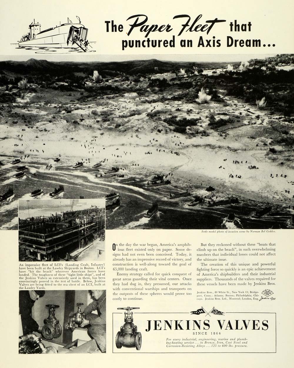 This is an original 1944 black and white print ad for the Jenkins Valves from Jenkins Bros. located at 80 White Street, New York City.