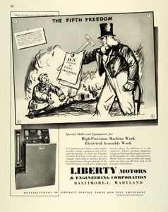 This is an original 1944 black and white print ad for the High- precision machine and the electrical assembly machinery from Liberty Motors and Engineering Corporation, manufacturers of aircraft service tools and test equipment; located in Baltimore, Maryland.