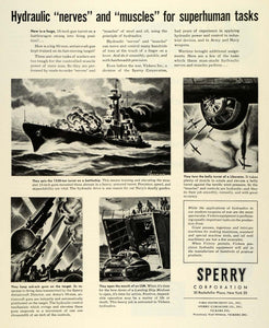 This is an original 1944 black and white print ad for the Sperry Corporation located in 30 Rockefeller Plaza, New York City.