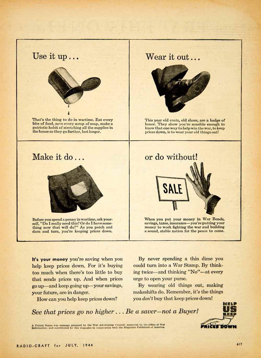 1944 Ad War Advertising Council World War II Effort Money Spending Prices YRC2