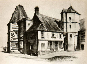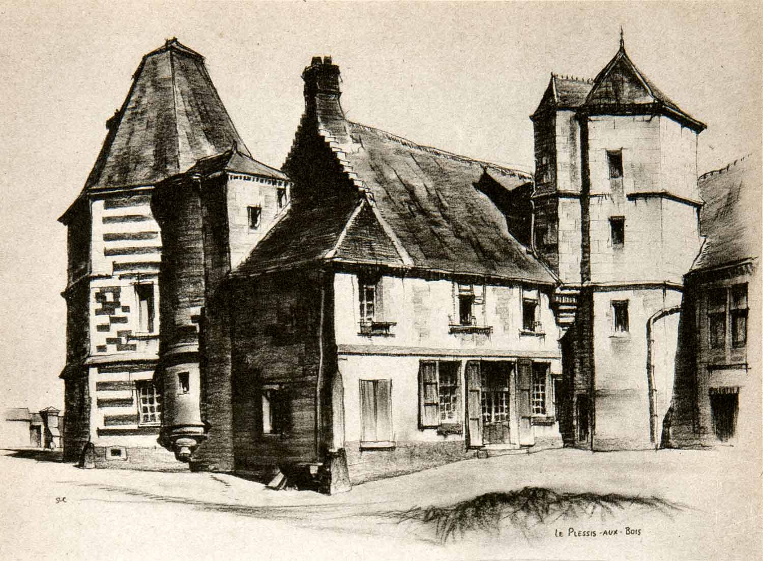 This is an original 1944 black and white photogravure of the château farm at Le Plessis-aux-Bois in north central France. This town is located in the Seine-et-Marne department in the Ile-de-France region. The farm is near the edge of the Forest of Villers-Cotterets.