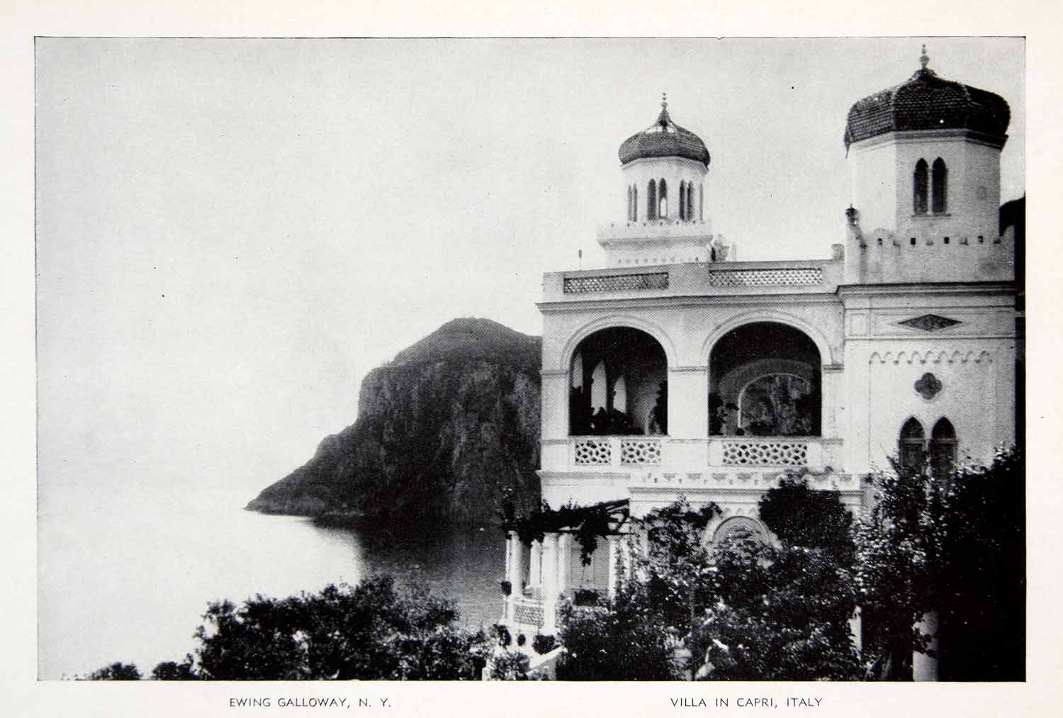 This is an original 1944 black and white halftone print of a Villa in Capri, Italy.