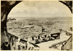 1944 Print Vista Caribbean Military Base Ancient Spanish Fortress Navy Ship AAF1