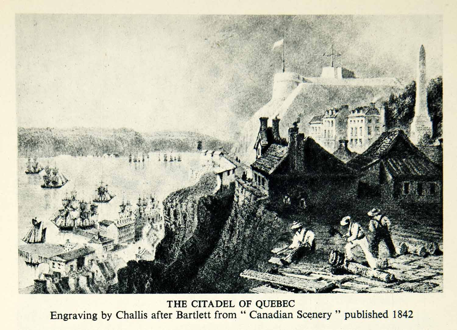 This is an original 1944 black and white rotogravure of the Citadelle of Quebec, Canada, which is a military fortress located in the area of Old Quebec.