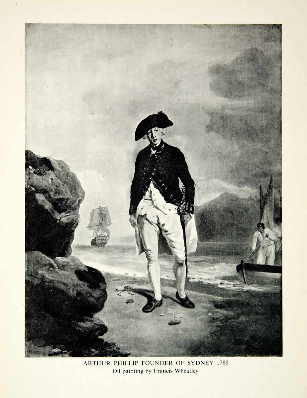 This is an original 1944 black and white rotogravure of a portrait of Arthur Phillip, who was the founder of Sydney, and its first governor.