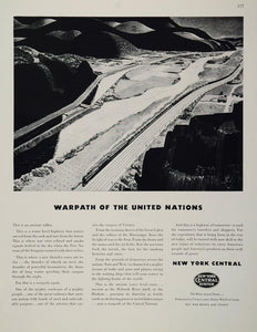"Warpath of the United Nations" This is an original World War II era ad for the New York Central System.