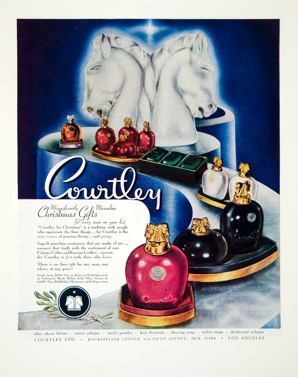 This is an original 1945 color print ad for Courtley men's toiletries, the ideal Christmas gift.