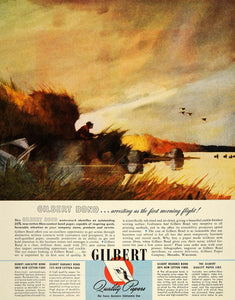 This is an original 1945 color print ad for Gilbert quality papers from The Gilbert Paper Company of Menasha, Wisconsin.