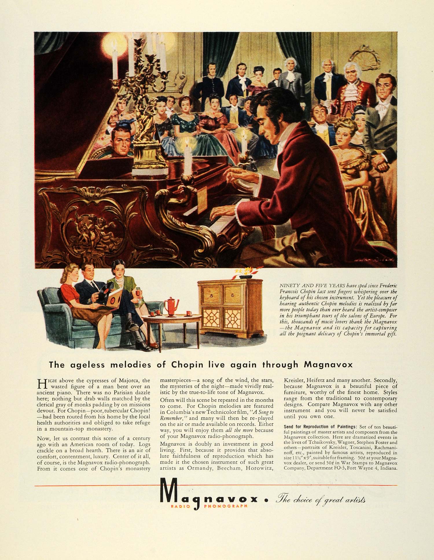 This is an original 1945 color print ad for the Magnavox Radio Phonograph.