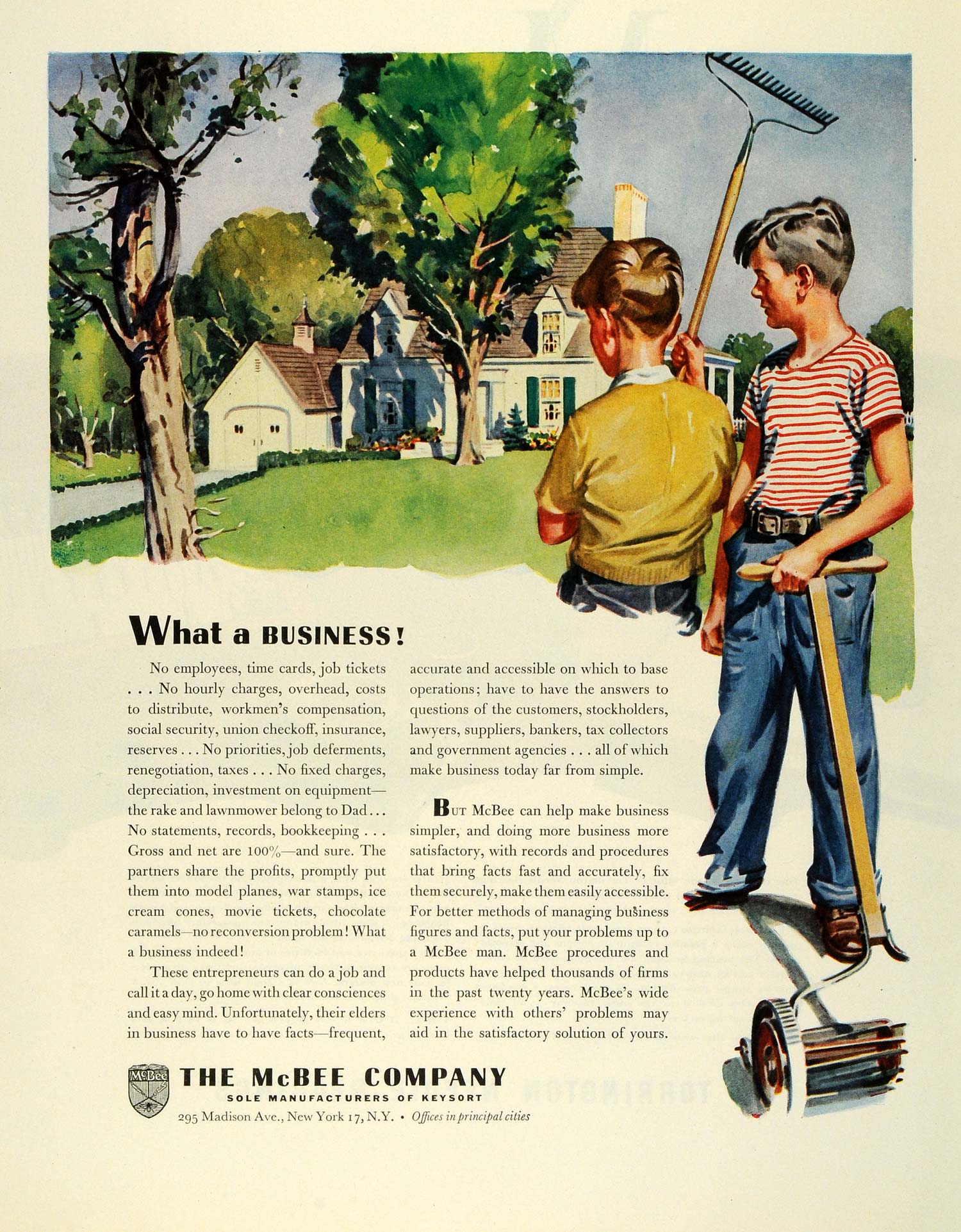 This is an original 1945 color print ad for the McBee Company, sole manufacturers of Keysort located at 295 Madison Avenue, New York City.