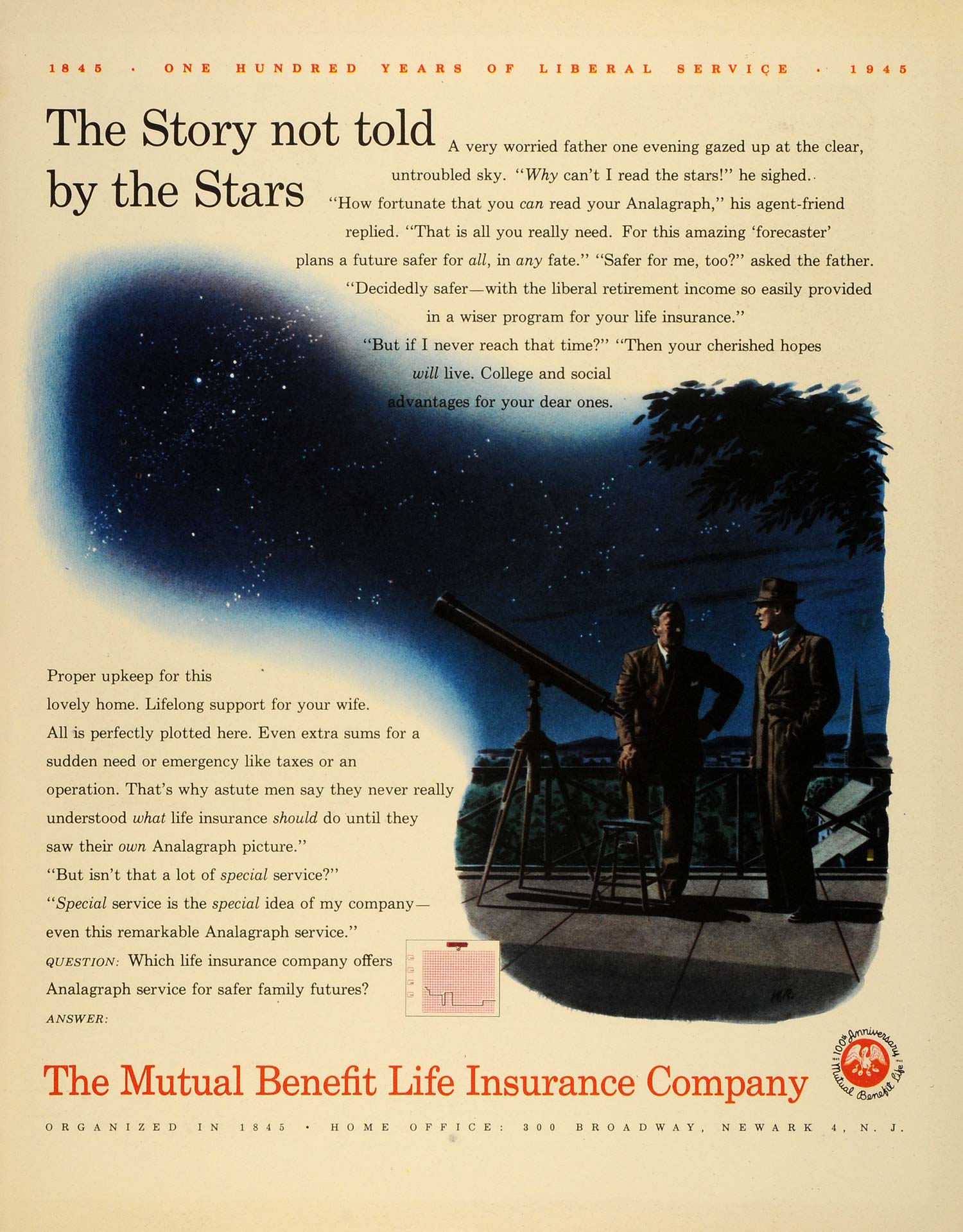 This is an original 1945 color print ad for The Mutual Benefit Life Insurance Company of Newark, New Jersey.