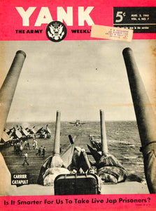 1945 Cover YANK World War II Aircraft Carrier Catapult Takeoff Pacific View YYA2