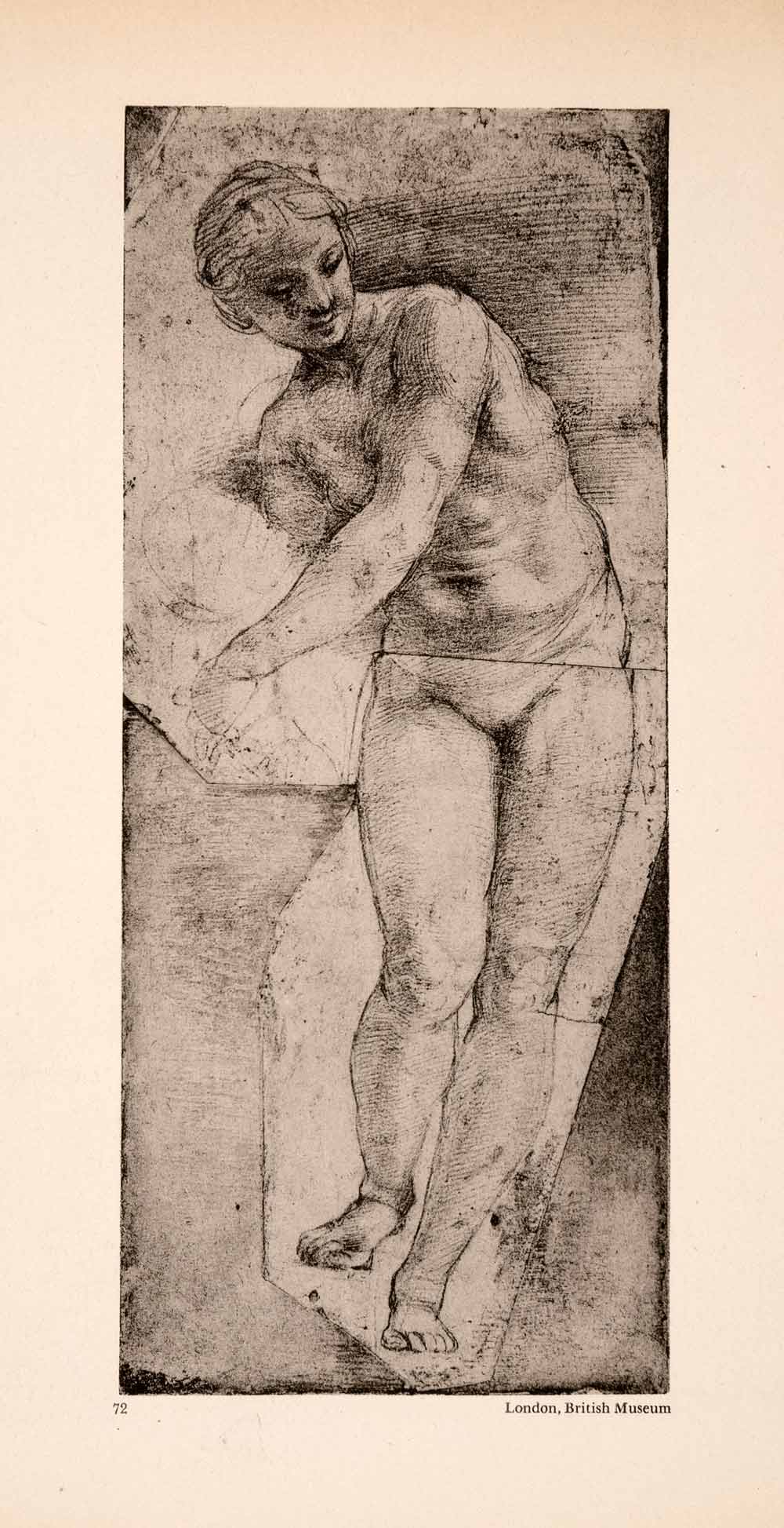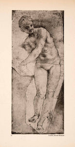 This is an original 1945 black and white photogravure of a silverpoint drawing of Venus. Silverpoint is a drawing technique where the artist uses a silver wire to scratch the surface. Raphael was a painter and architect of the High Renaissance period. His work is admired for its clarity of form and ease of composition and for its visual achievement of the Neoplatonic ideal of human grandeur.