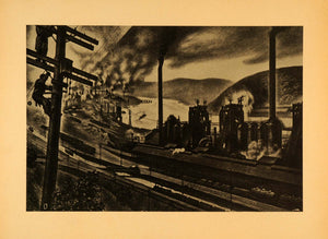 This is an original 1945 halftone print of an original lithograph of Steel Valley in Pennsylvania.