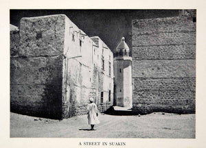 This is an original 1945 monochrome halftone print of a street in Suakin, Sudan.