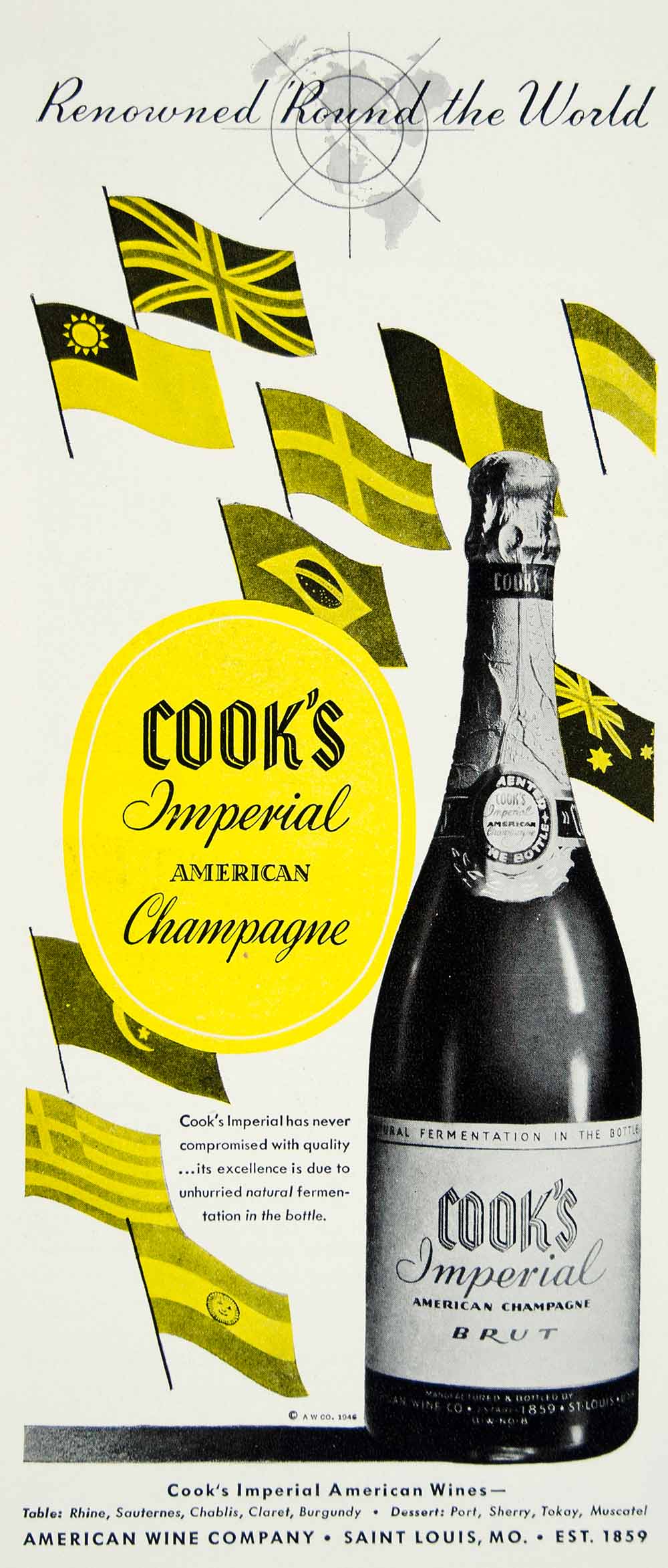 This is an original 1946 two-color print ad for Cook's Imperial American Wines.