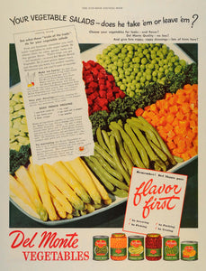 This is an original 1946 color print ad for Del Monte canned vegetables (and fruits). It also gives a trick of the trade recipe for jazzing up plain veggies.