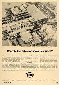 This ad features an illustration of the architect's drawing of the proposed 8 Esso Research buildings at Linden Park, New Jersey.