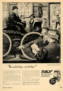 This is an original 1946 black and white print ad for the SKF Ball and Roller Bearings from SKF Industries Incorporation located in Philadelphia, Pennsylvania.