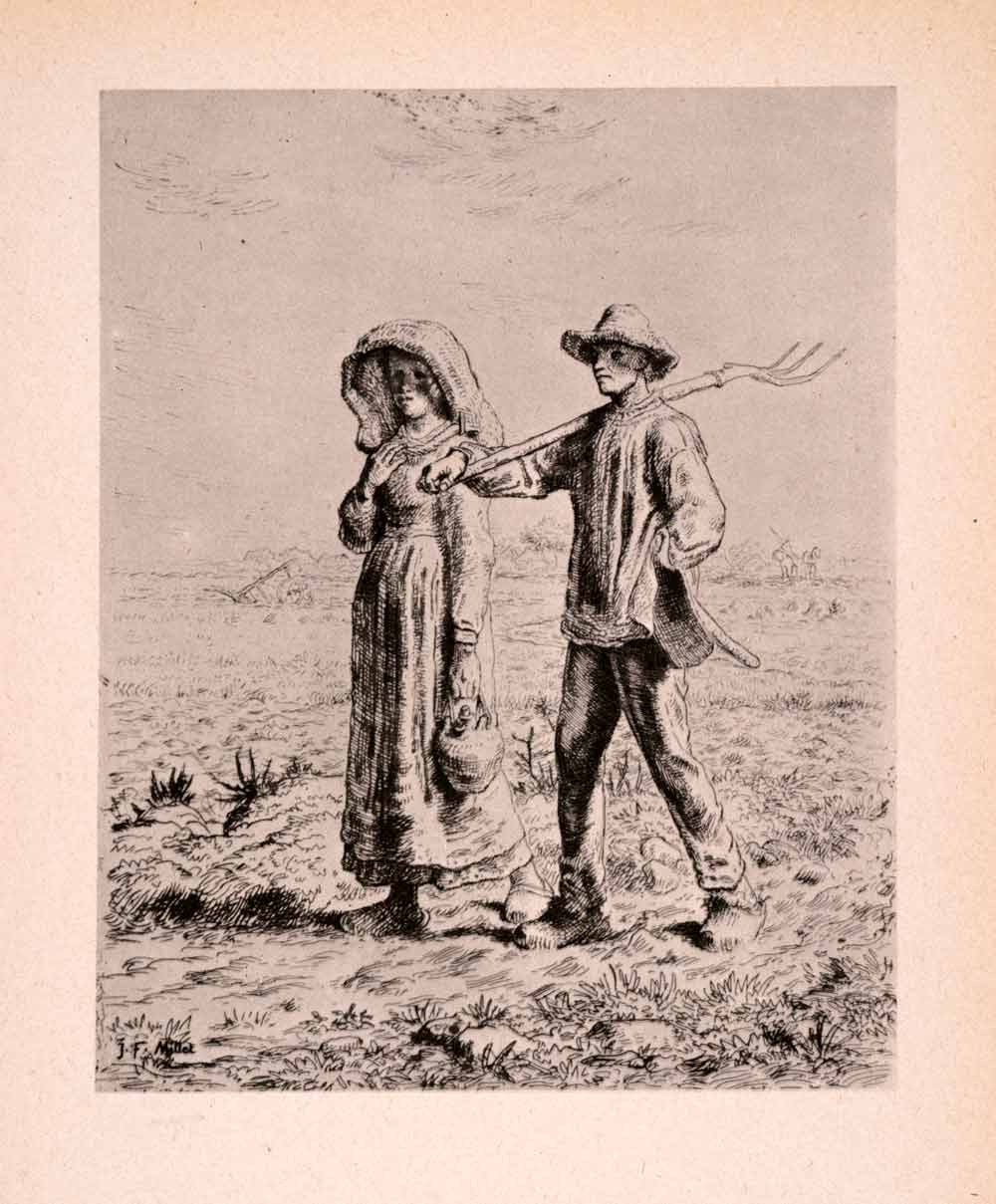 This is an original 1946 halftone print of an etching, "Going Out to Work," by Jean-François Millet.