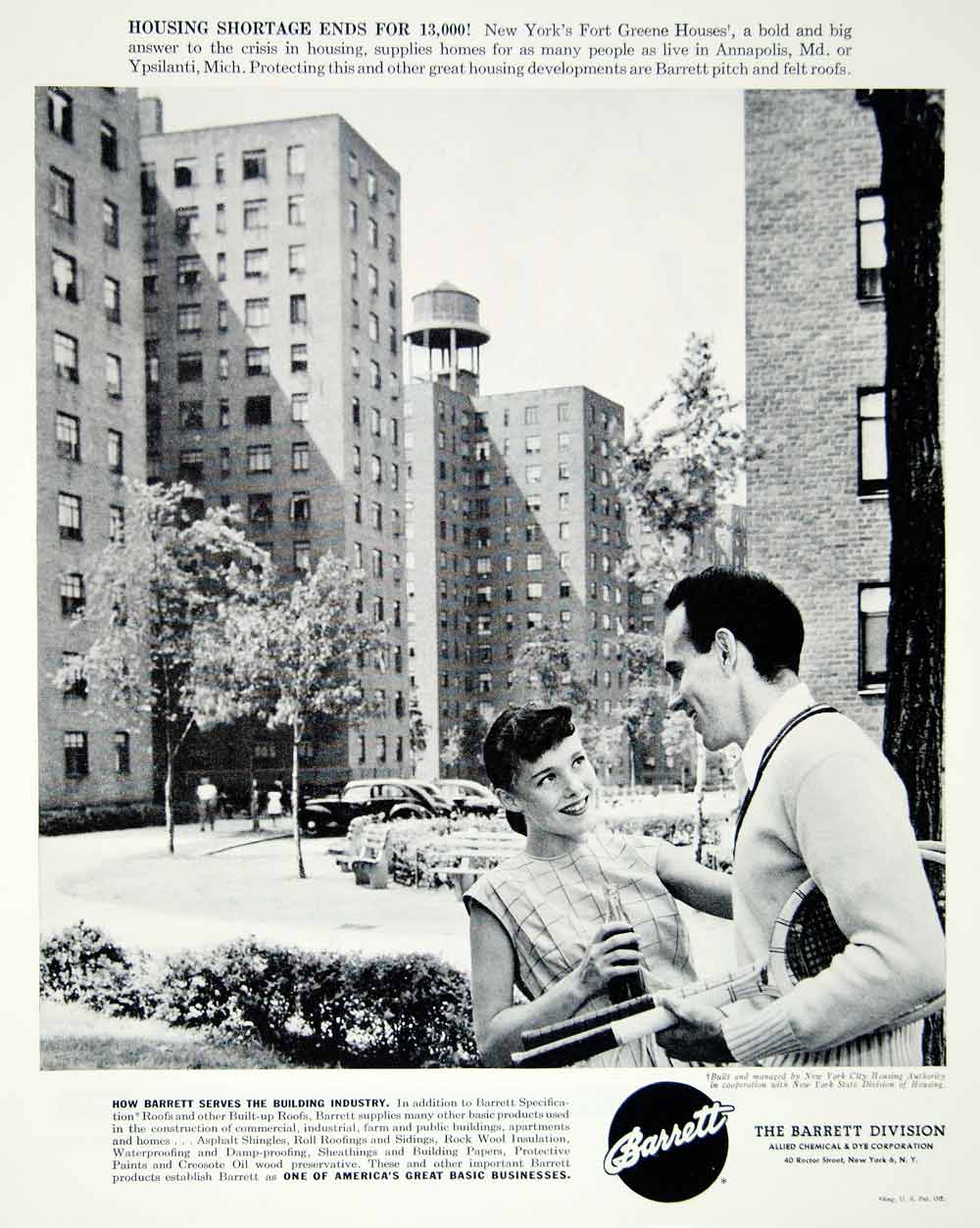 This is an original 1947 black and white print ad for the Barrett Division Allied Chemical and Dye Corporation.
