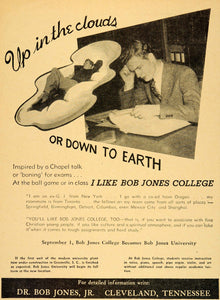 This is an original 1947 black and white print ad for the Bob Jones College located in Cleveland, Tennessee and the Bob Jones University located in Greenville, S.C.