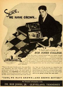 This is an original 1947 black and white print ad for the Bob Jones College located in Cleveland, Tennessee offering courses in voice, violin, speech, and art.