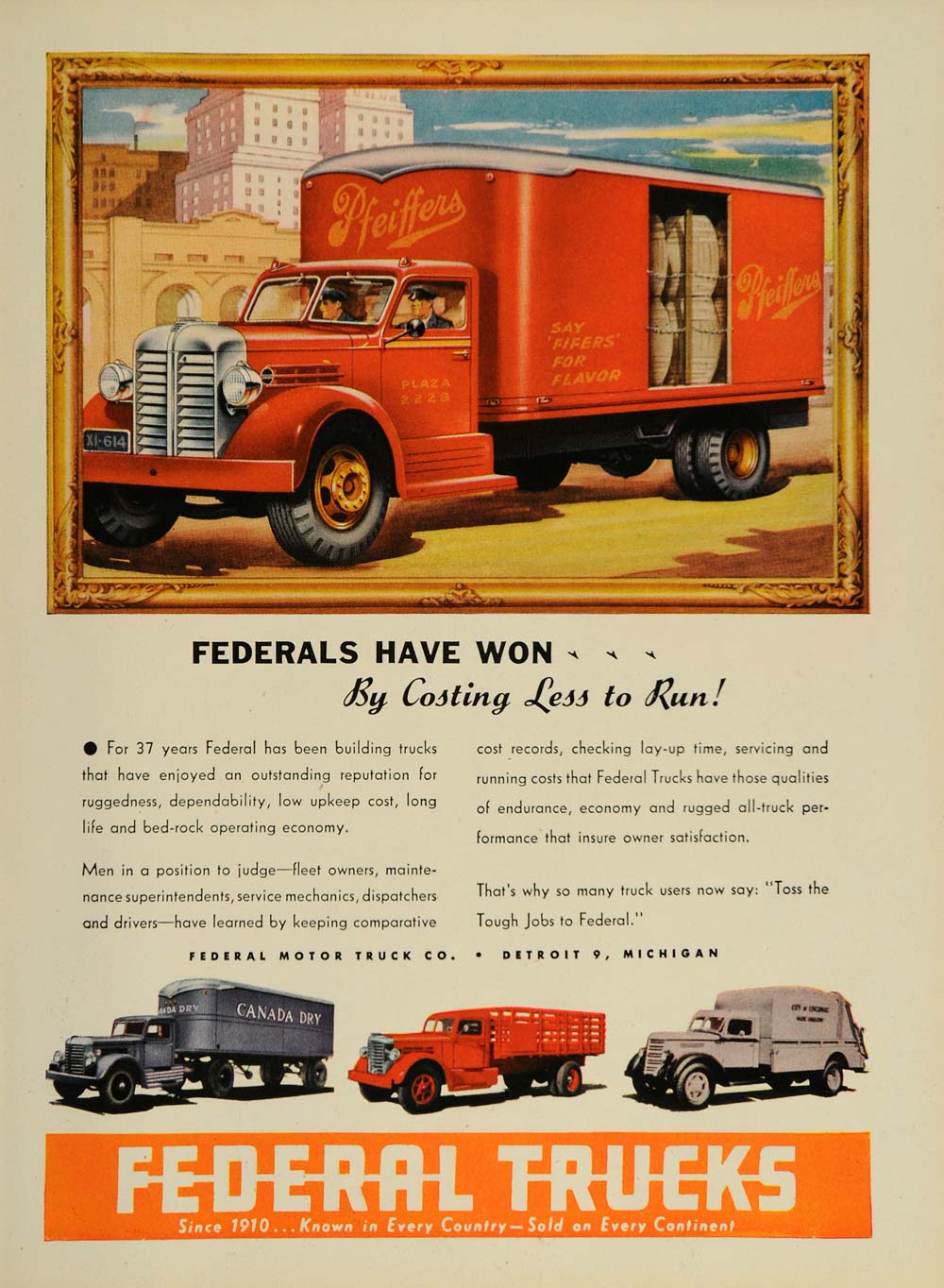 This is an original 1947 color print ad for Federal Trucks from the Federal Motor Truck Co., Detroit, Michigan.